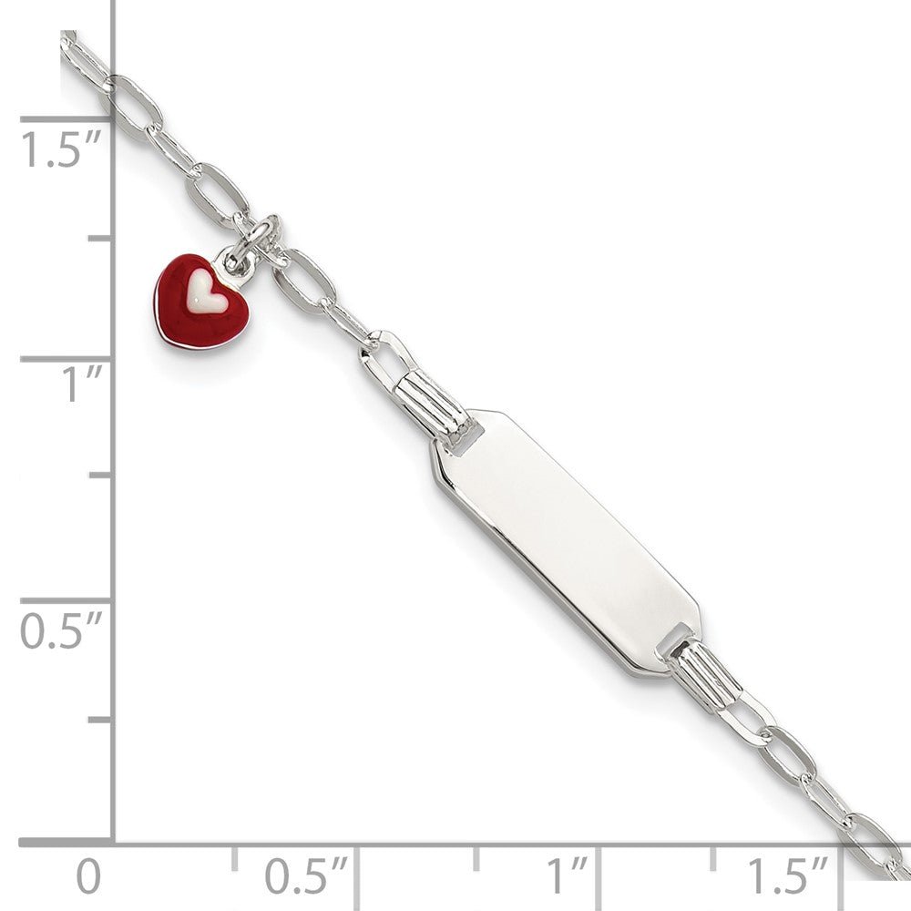 Sterling Silver Polished Red and White Enameled Heart Charm 5 inch with 1 inch extension Childrens ID Bracelet