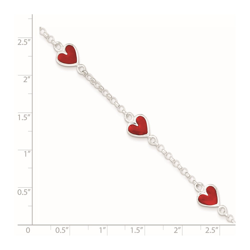 Sterling Silver Polished & Red Enamel Heart w/ 1in ext Children's Bracelet