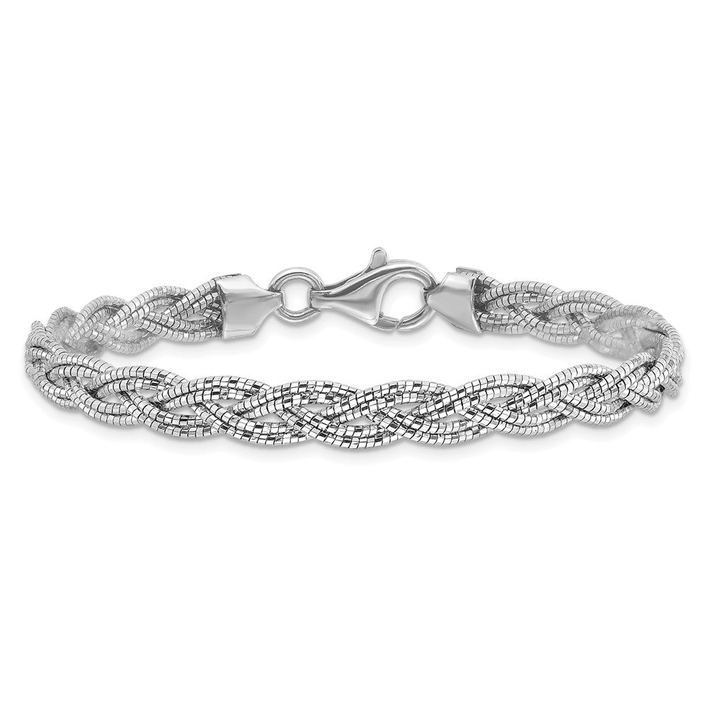 Sterling Silver Polished Rhodium-plated Diamond-cut Braided Bracelet