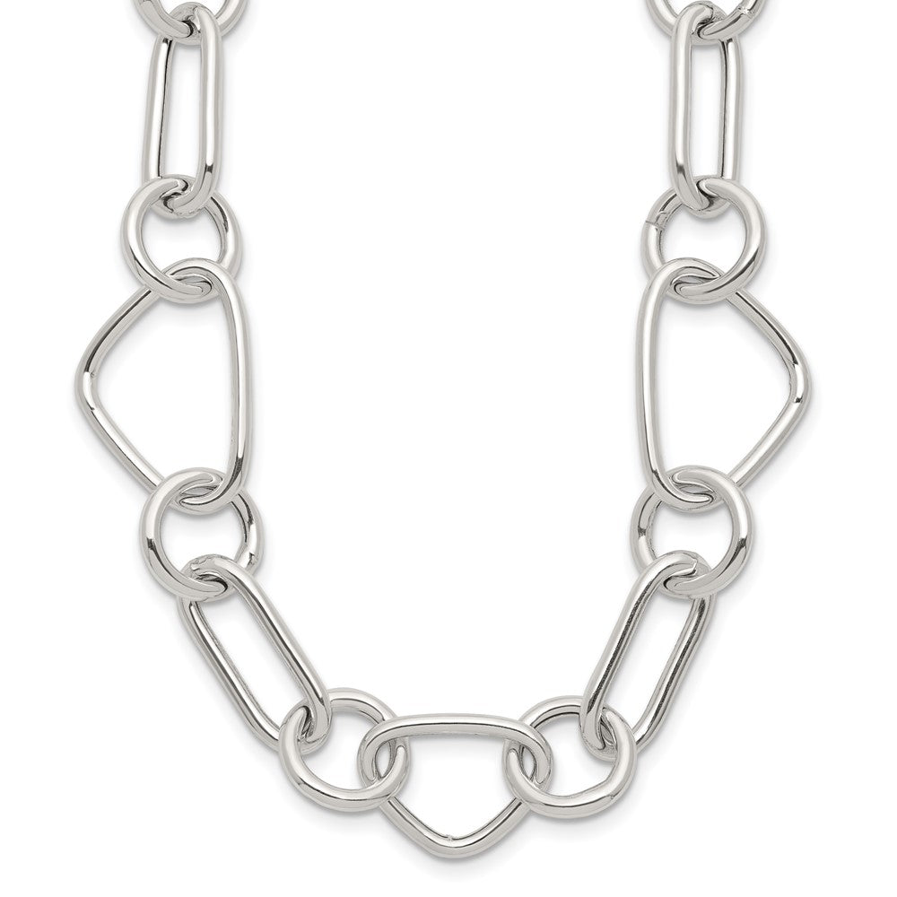 Sterling Silver Polished Triangle Round and Oval Link 17.5 inch Necklace