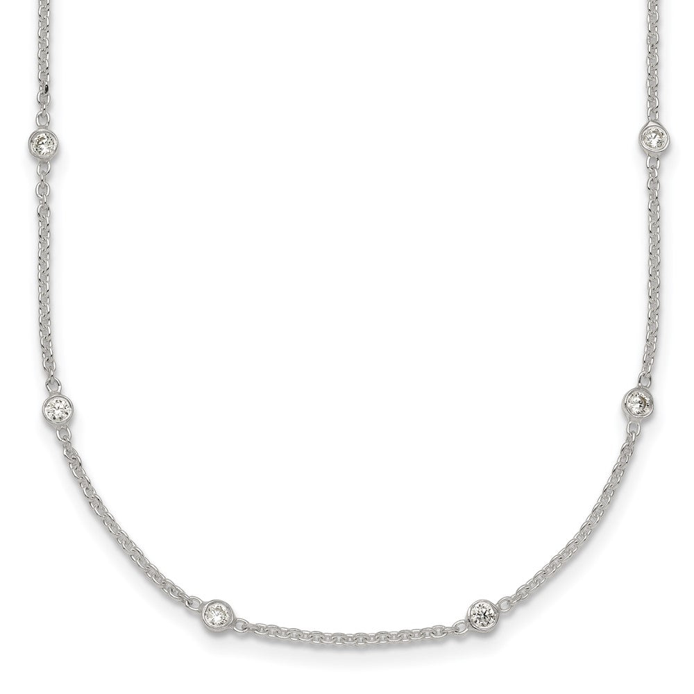 Sterling Silver Polished White CZ 6-Station 16.5 with 1 inch Extension Necklace