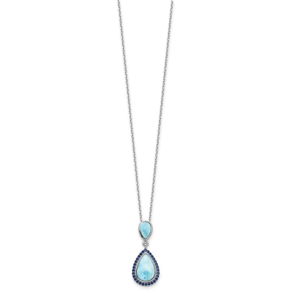 Sterling Silver RH-plated Blue CZ and Larimar 16in w/2in ext Necklace