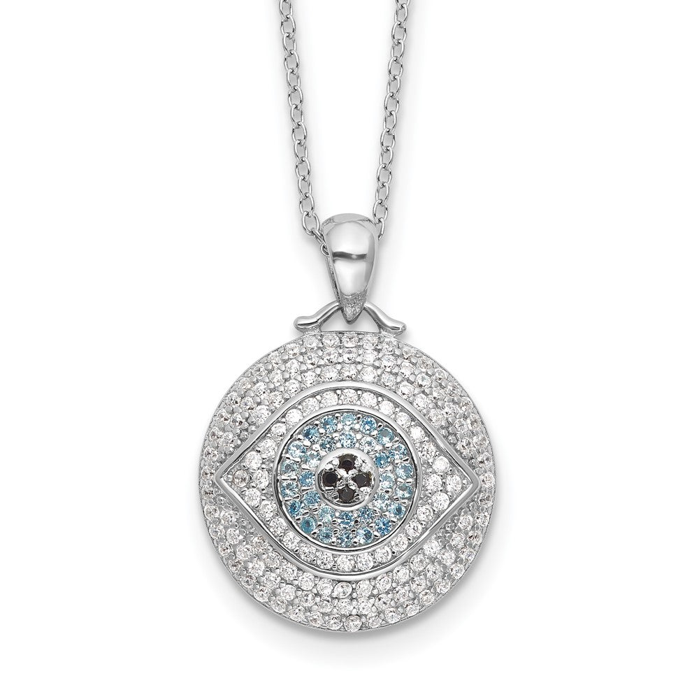 Sterling Silver Rh-plated Created Blue Spinel and CZ Evil Eye 18in Necklace