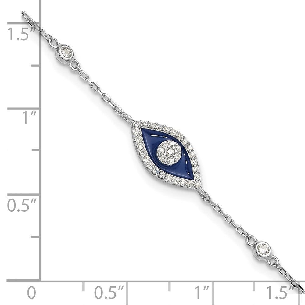 Sterling Silver RH-plated CZ Enamel Evil Eye 7in w/1in ext. Bracelet