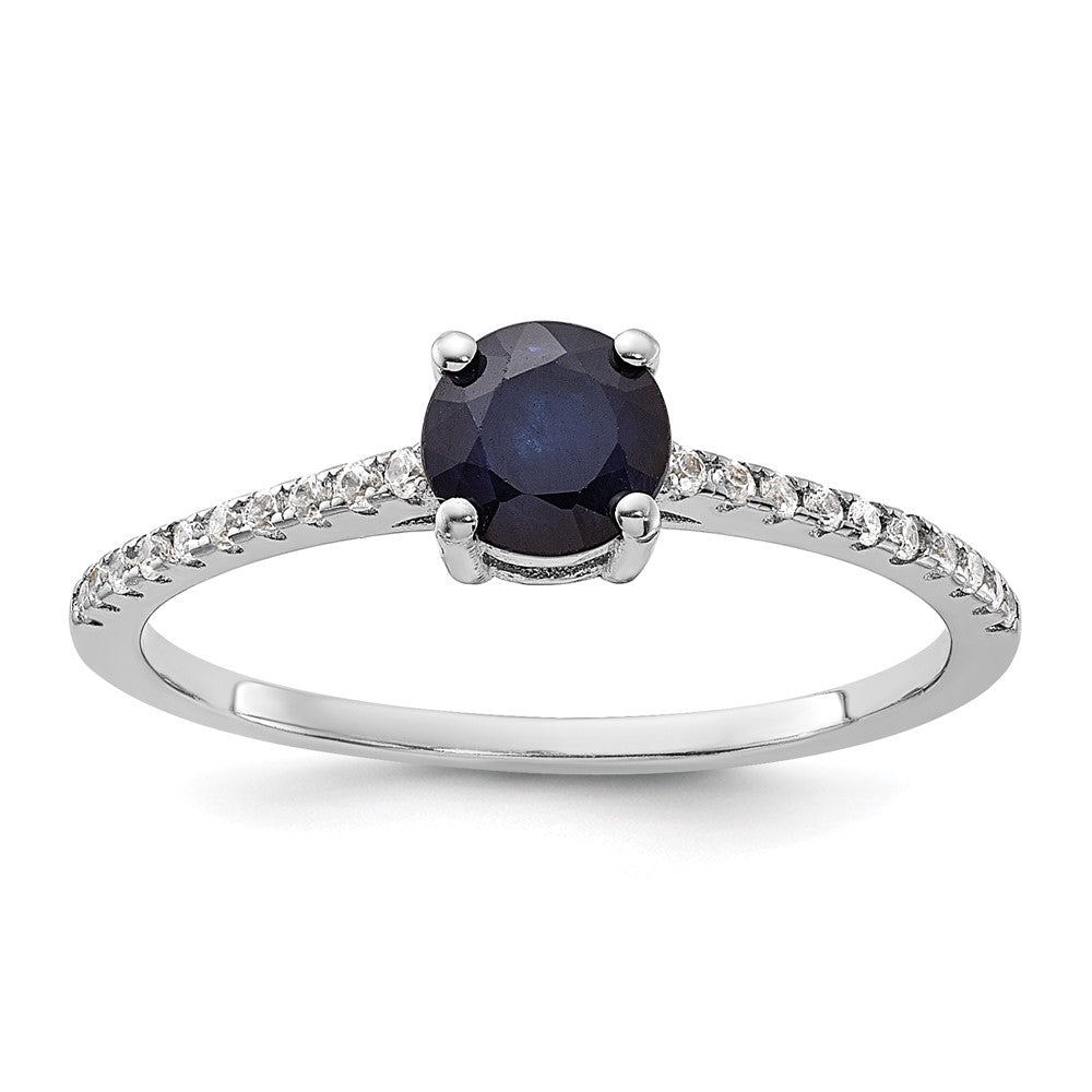 Sterling Silver Rh-plated-plated .81S Sapphire and .12WT White Topaz Ring - 3