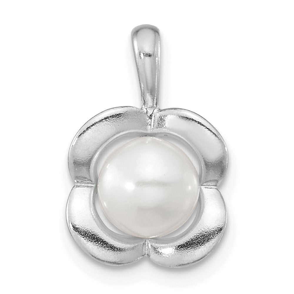 Sterling Silver Rh-plated Polished FWC Pearl Flower Pendant