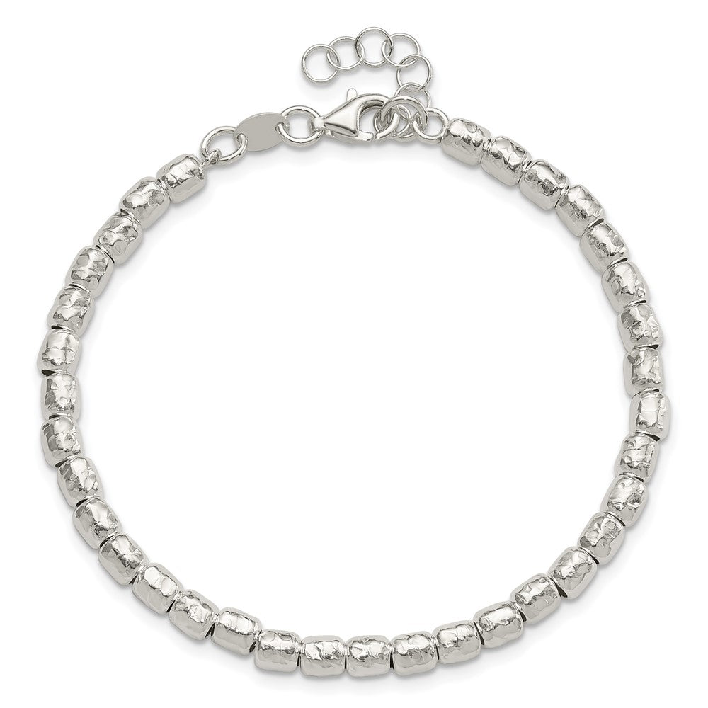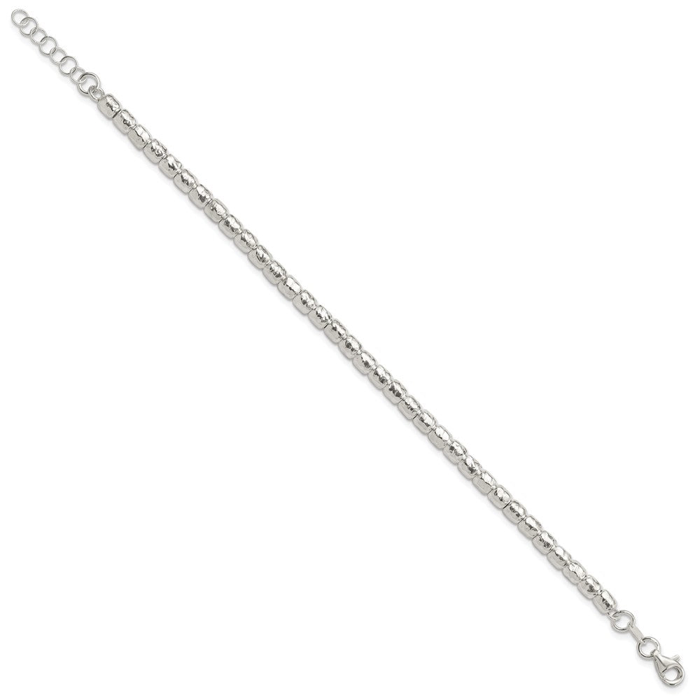 Sterling Silver RH-plated Polish/Hammered Beaded w/1 in ext. Bracelet