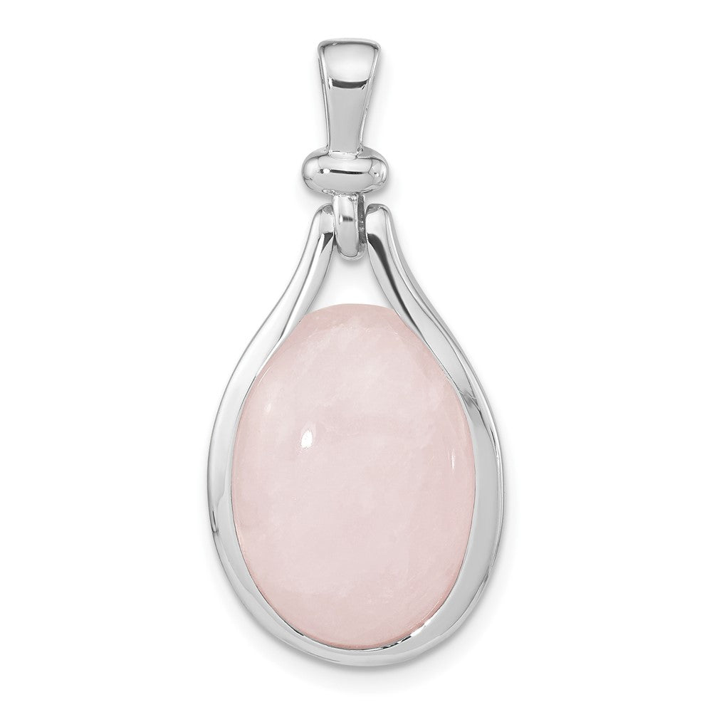 Sterling Silver RH-plated Rose Quartz Oval Pendant