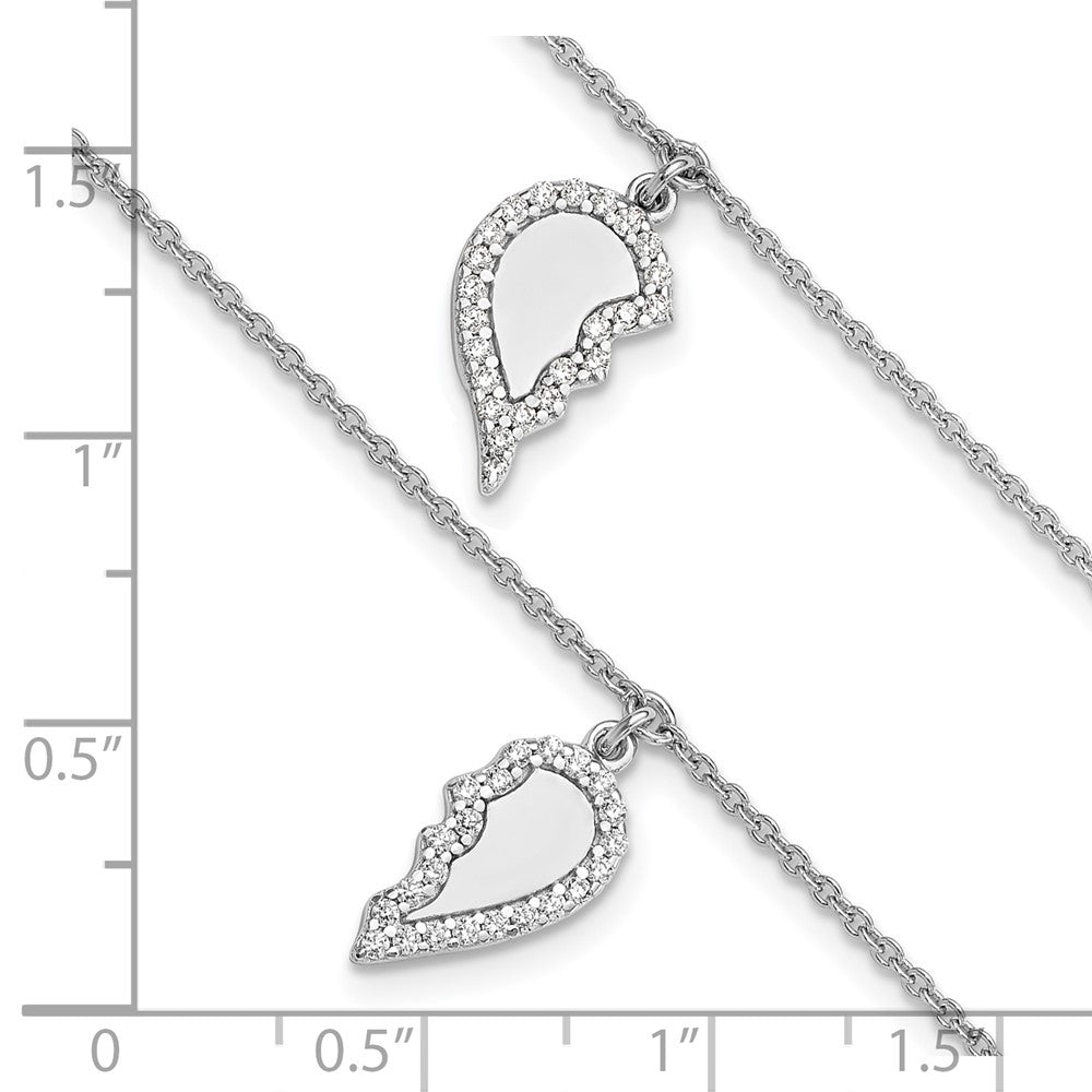 Sterling Silver Rhod-plated CZ Half Heart 7.25in w/1 in ext 2 Bracelet Set