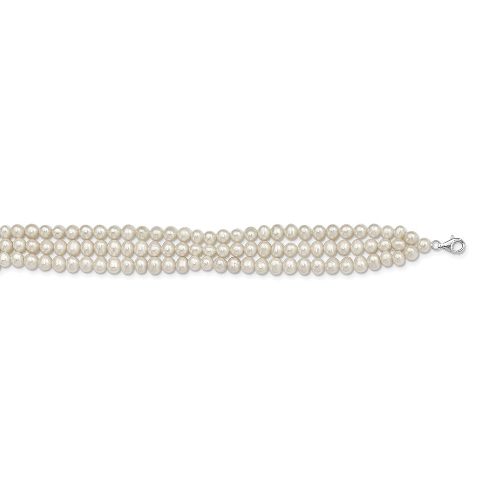 Sterling Silver Rhodium-plated 5-6mm White Semi-Round Freshwater Cultured Pearl 14 inch with 1.5 inch Choker