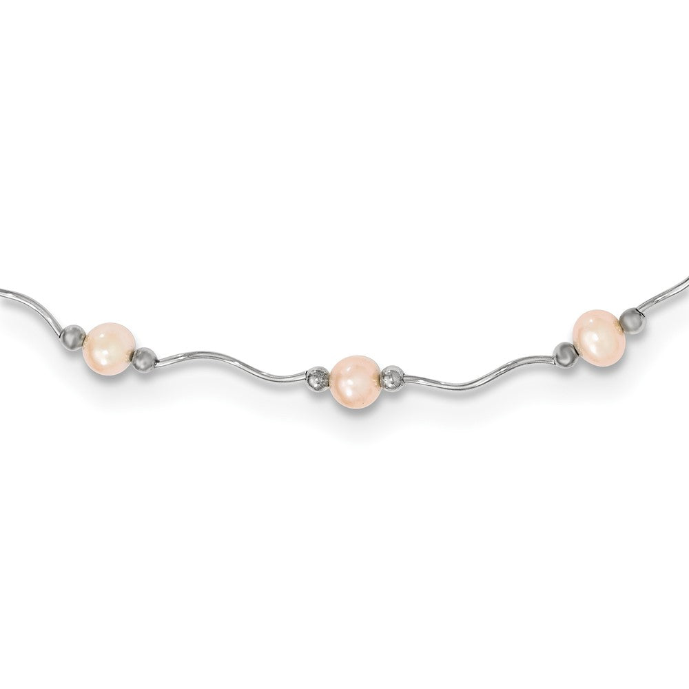 Sterling Silver Rhodium-plated 6-7mm Pink Near-Round Freshwater Cultured Pearl 18-Station 18 inch Necklace