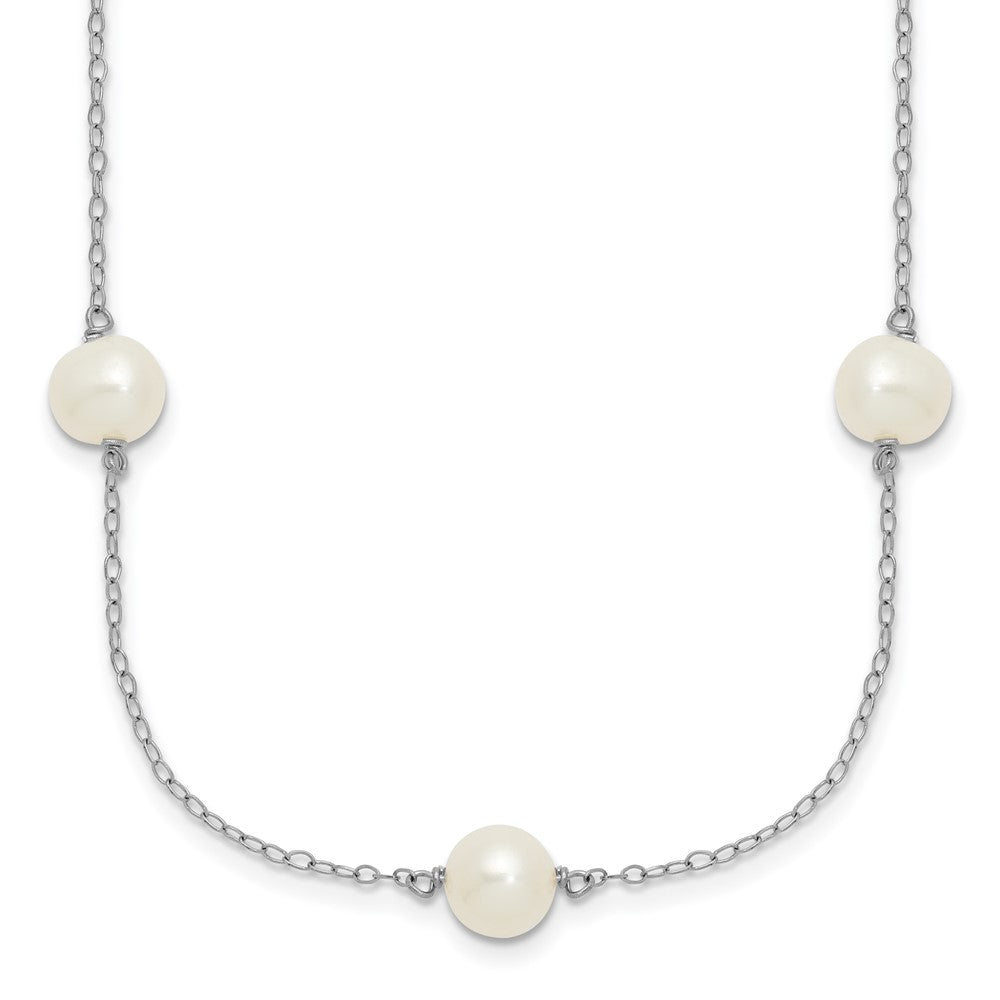 Sterling Silver Rhodium-plated 7-8mm White Near-Round Freshwater Cultured Pearl 7-Station 17 inch with 2 inch Extension Necklace