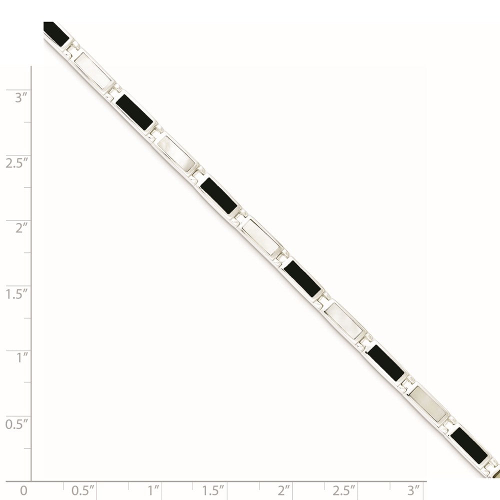 Sterling Silver Rhodium-plated 7in Onyx/Mother Of Pearl Bracelet