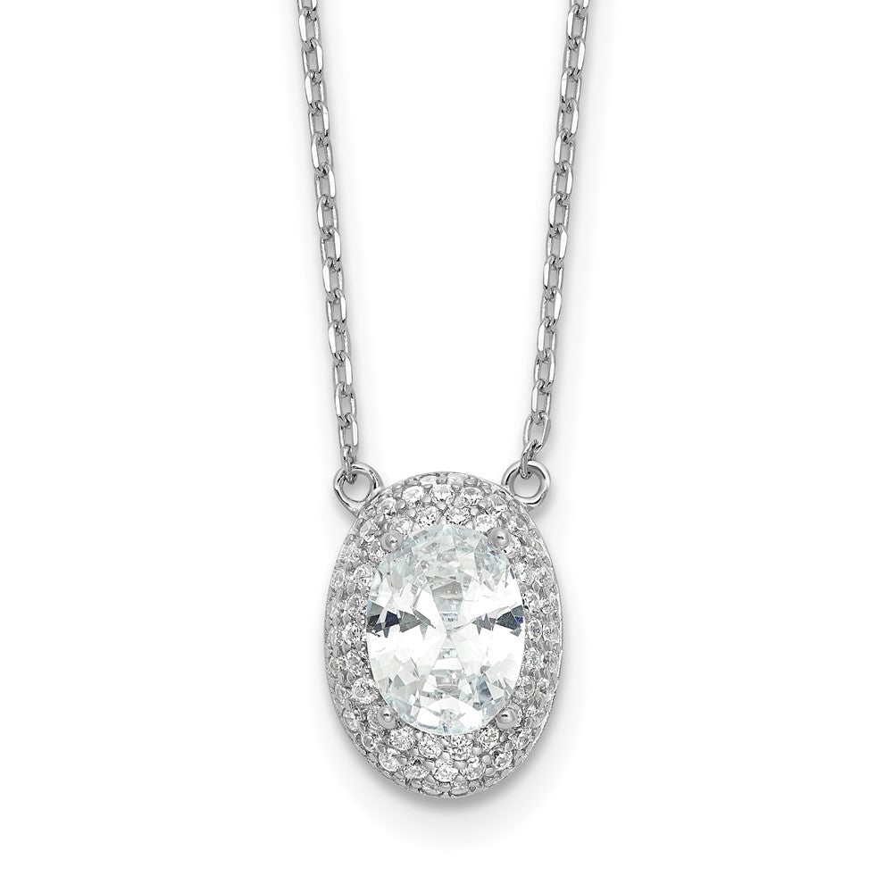 Sterling Silver Rhodium-plated 8x6mm Oval CZ 16in w/2in ext. Necklace