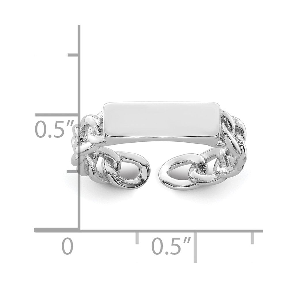 Sterling Silver Rhodium-plated Bar and Chain Link Adjustable Ring