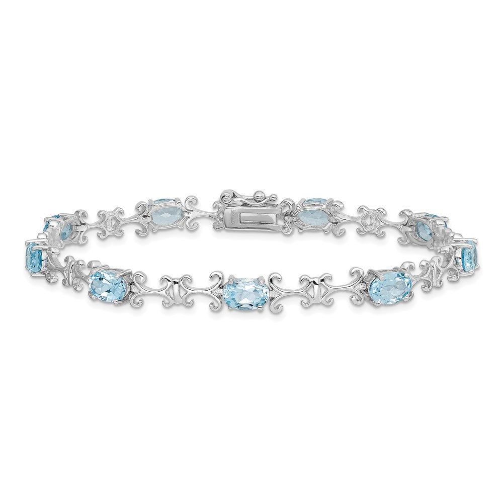 Sterling Silver Rhodium-plated Blue Topaz Oval Bracelet