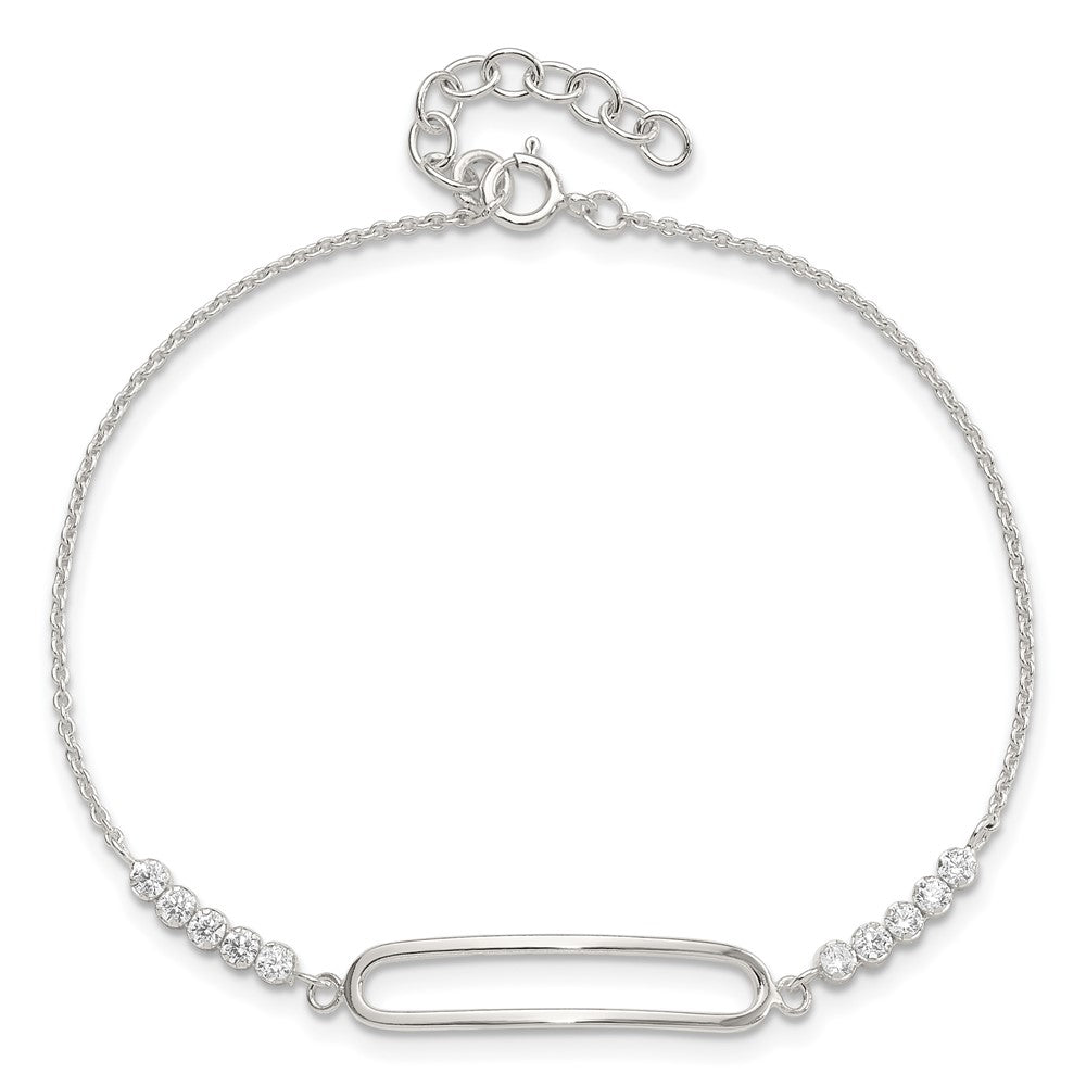 Sterling Silver Rhodium-plated CZ 7in with .75in ext. Bracelet