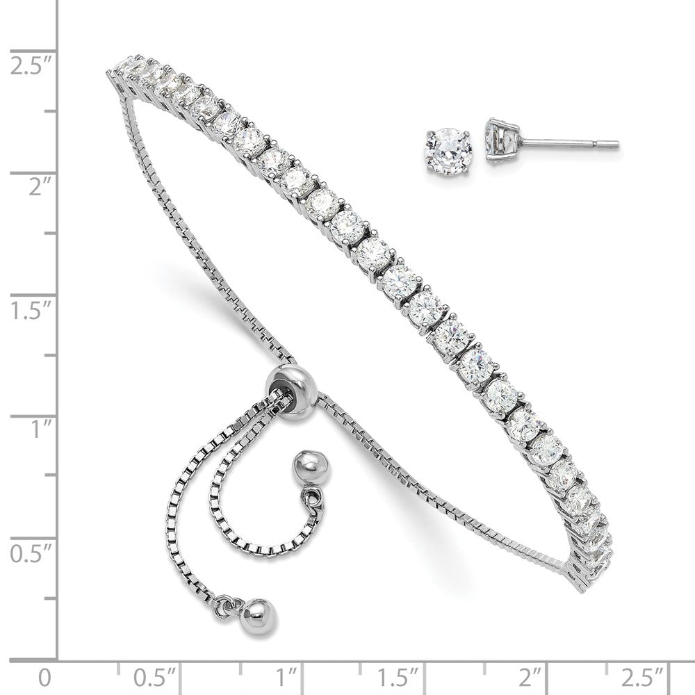 Sterling Silver Rhodium-plated CZ Adjustable Bracelet and Post Earring Set