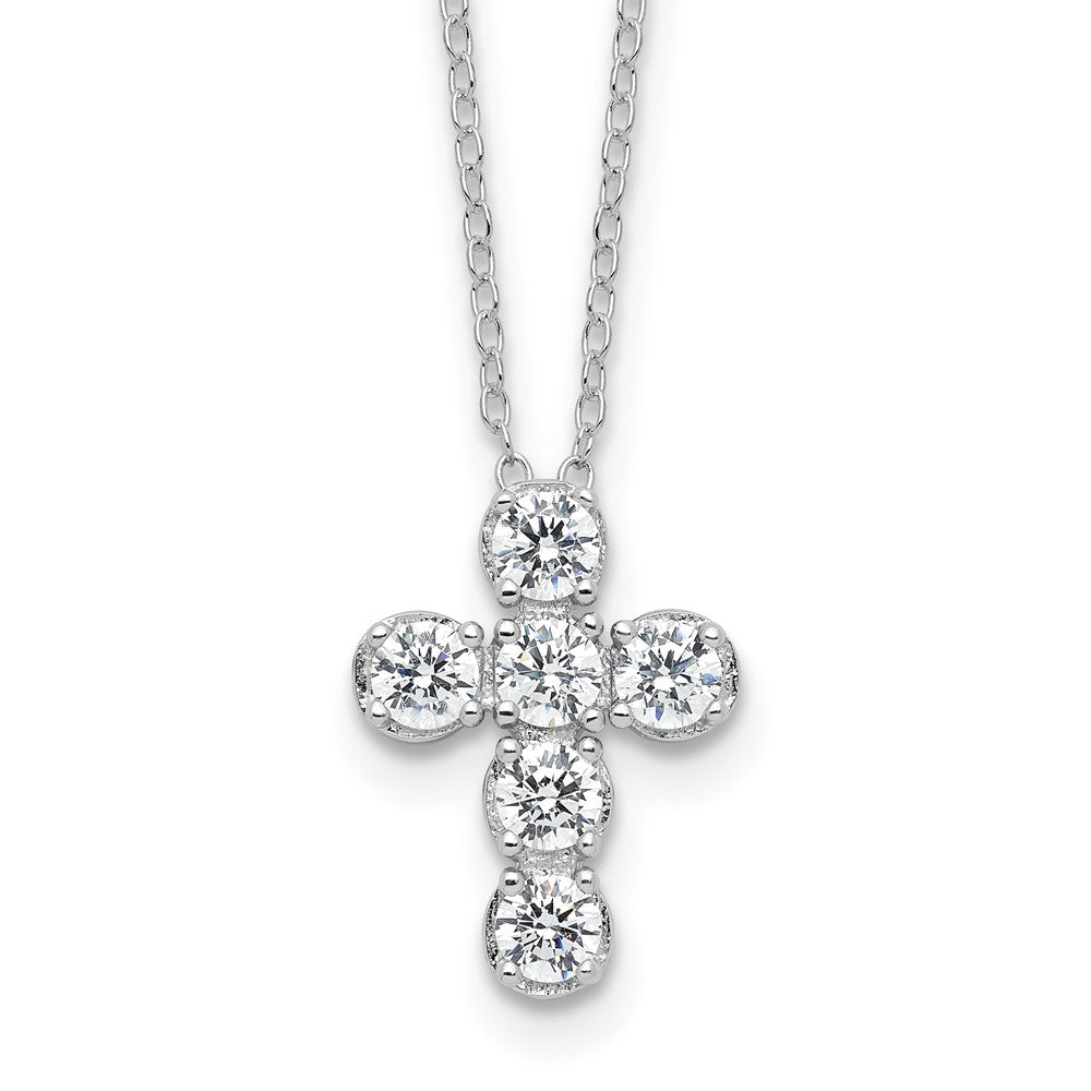 Sterling Silver Rhodium-plated CZ Cross 16in w/2in ext Necklace