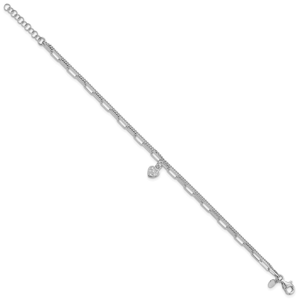 Sterling Silver Rhodium-plated CZ Heart 6.75in w/1in ext. Bracelet