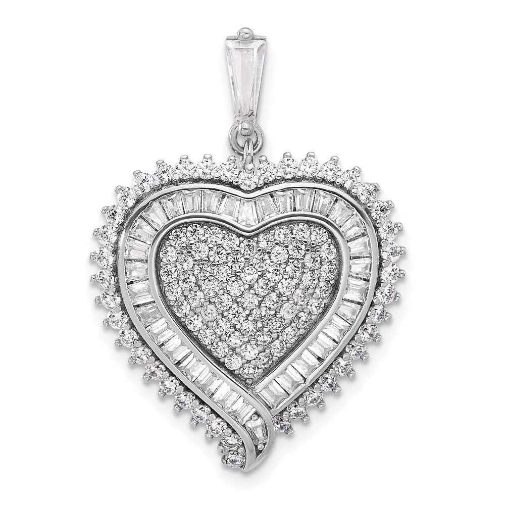 Sterling Silver Rhodium-plated CZ Heart Pendant - 2
