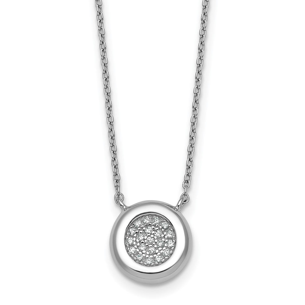 Sterling Silver Rhodium-plated CZ Round Cluster 16 inch with 1 inch Extension Necklace