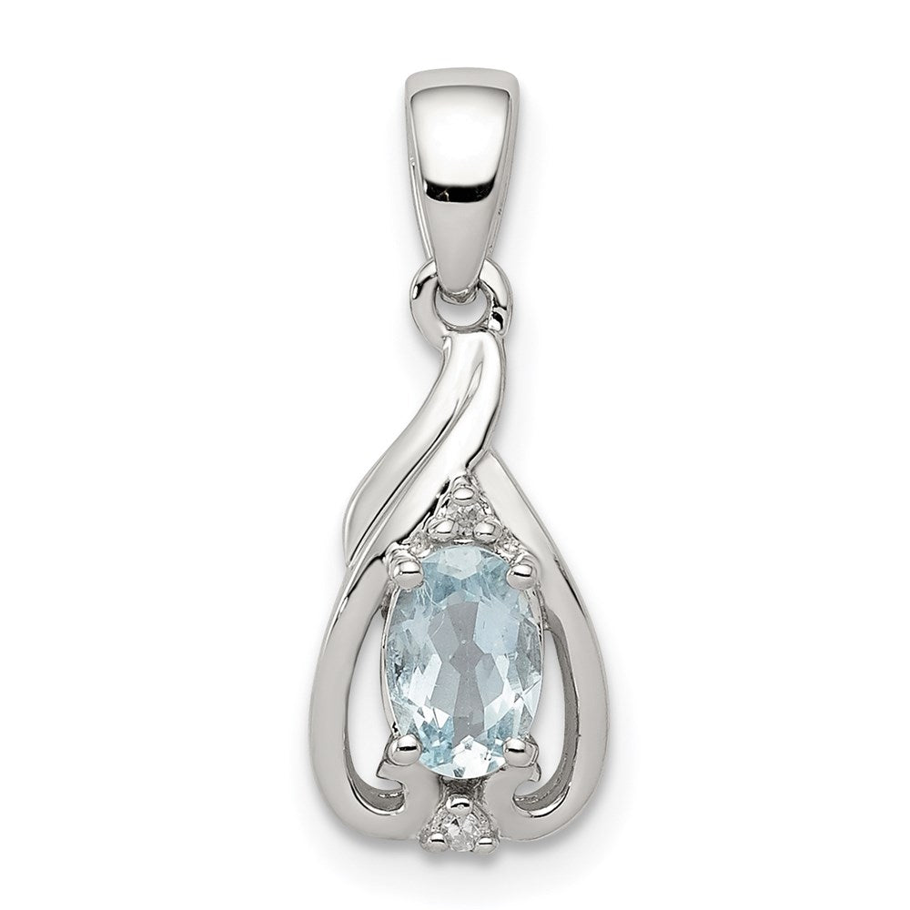 Sterling Silver Rhodium Plated Dia. & Aquamarine Oval Pendant - 2