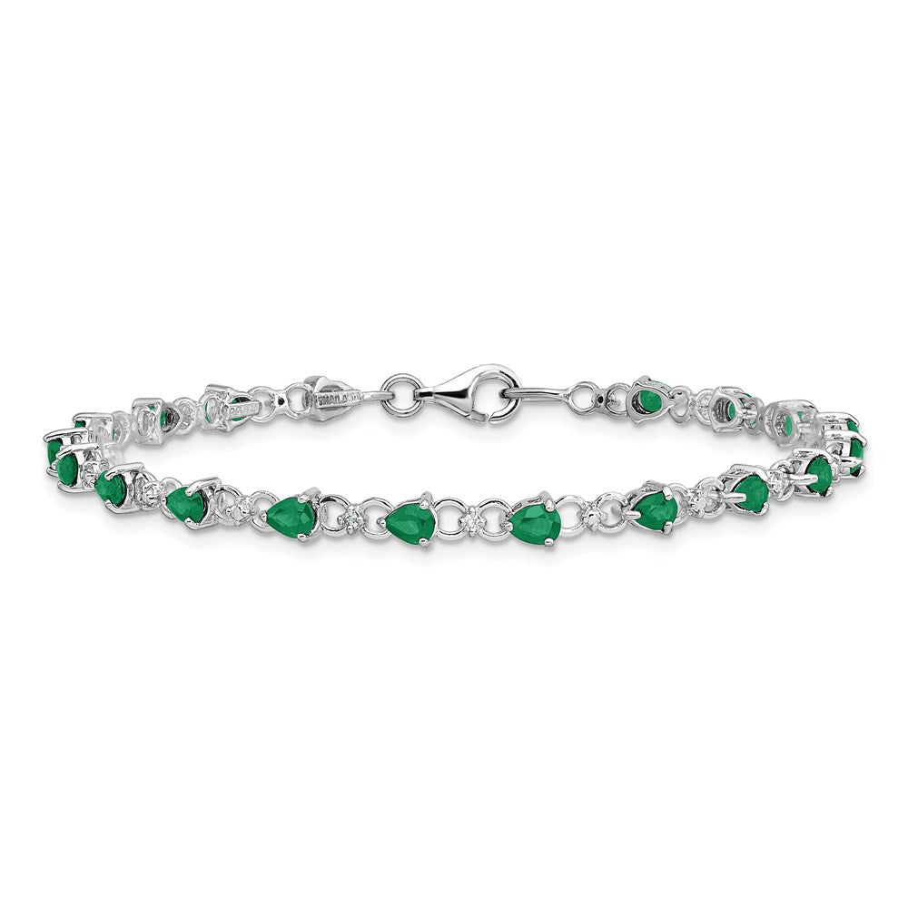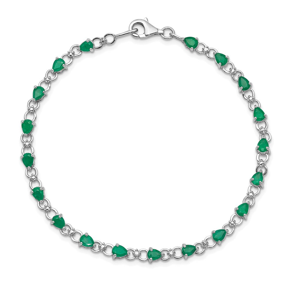 Sterling Silver Rhodium-plated Emerald and Diamond Bracelet - 2
