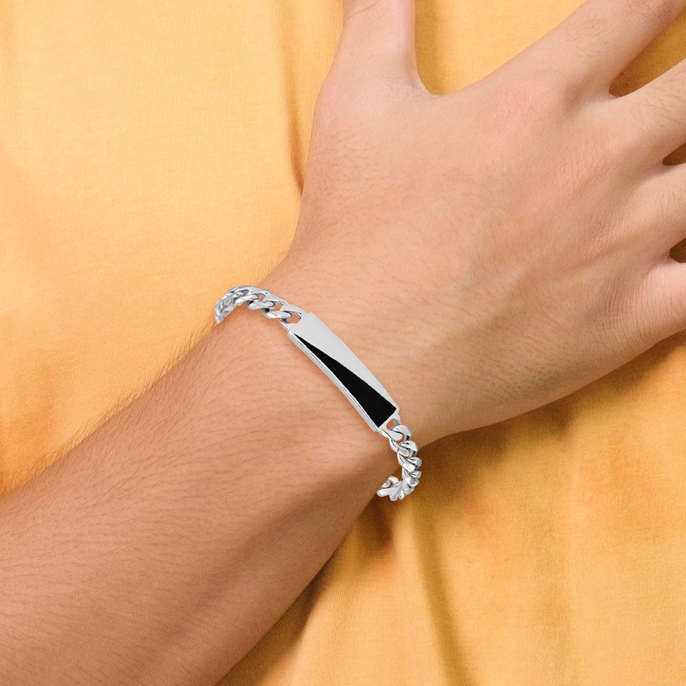 Sterling Silver Rhodium-plated Enameled Bar Men's 8in Bracelet
