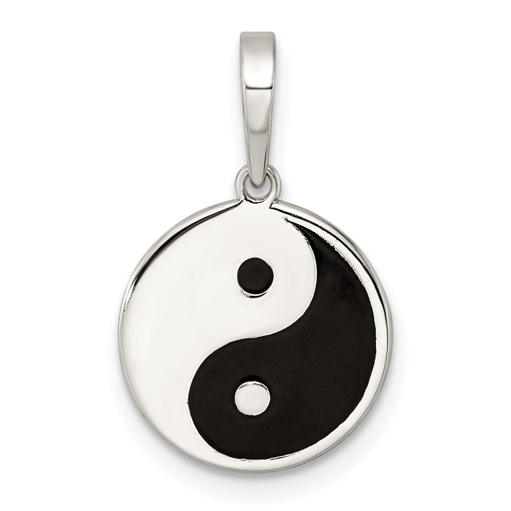 Sterling Silver Rhodium-plated Enameled Yin Yang Pendant