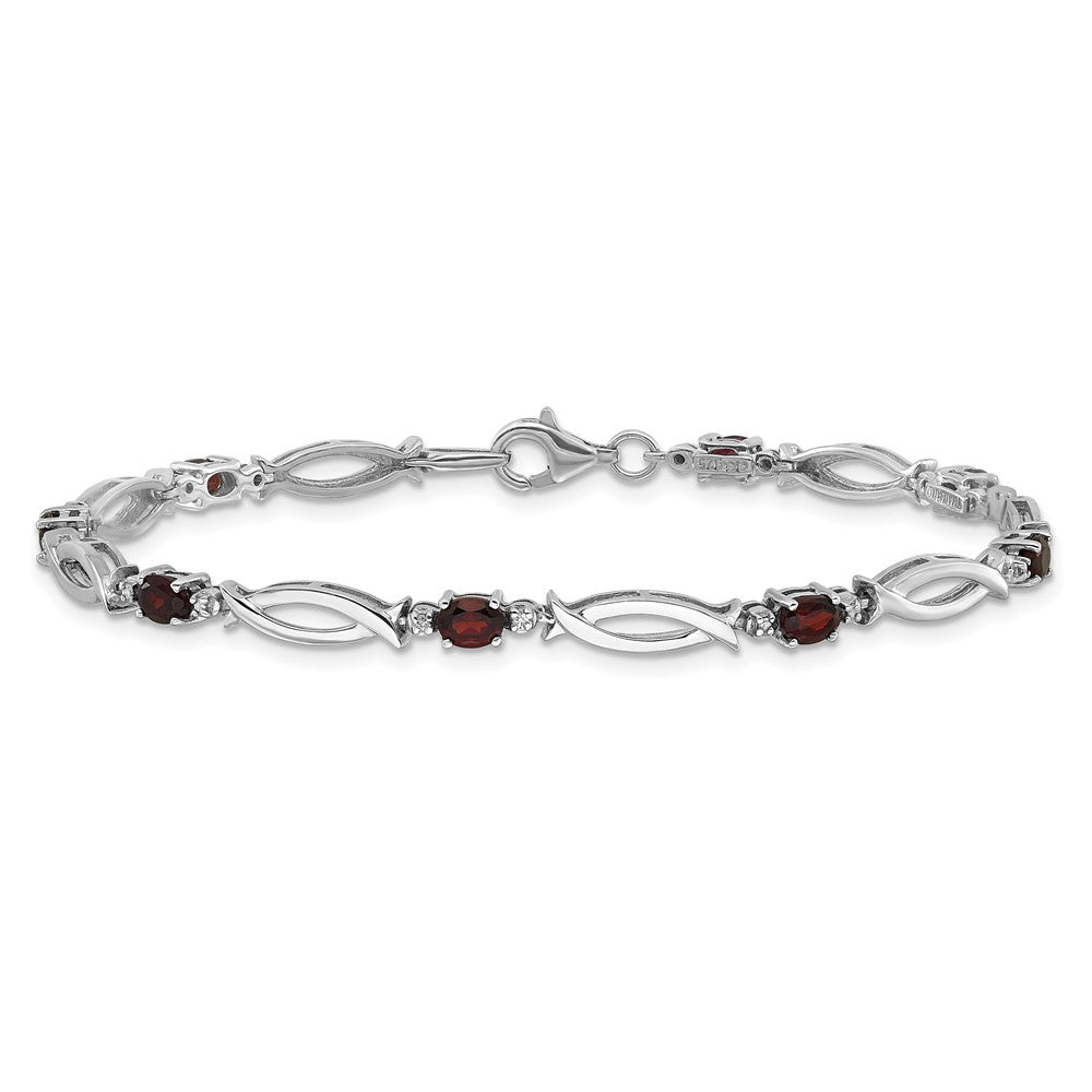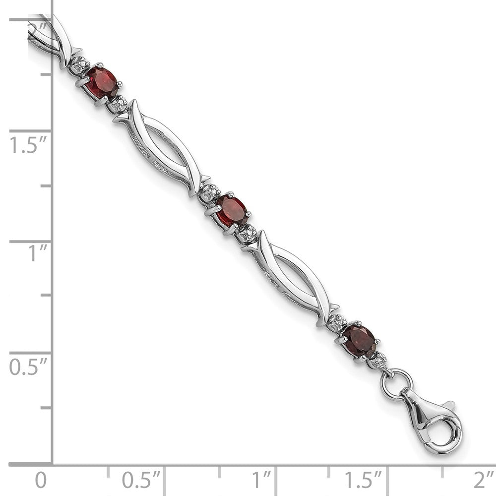 Sterling Silver Rhodium-plated Garnet and Diamond 7.25in Bracelet