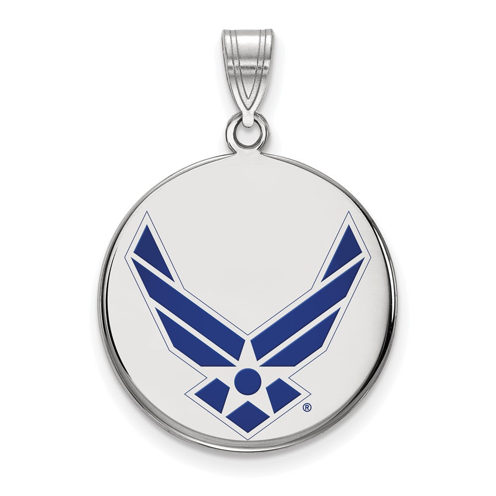 Sterling Silver Rhodium-plated LogoArt U.S. Air Force Large Enameled Disc Pendant