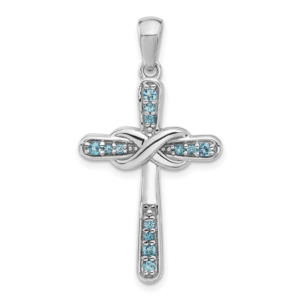 Sterling Silver Rhodium-plated London Blue Topaz Infinity Cross Pendant