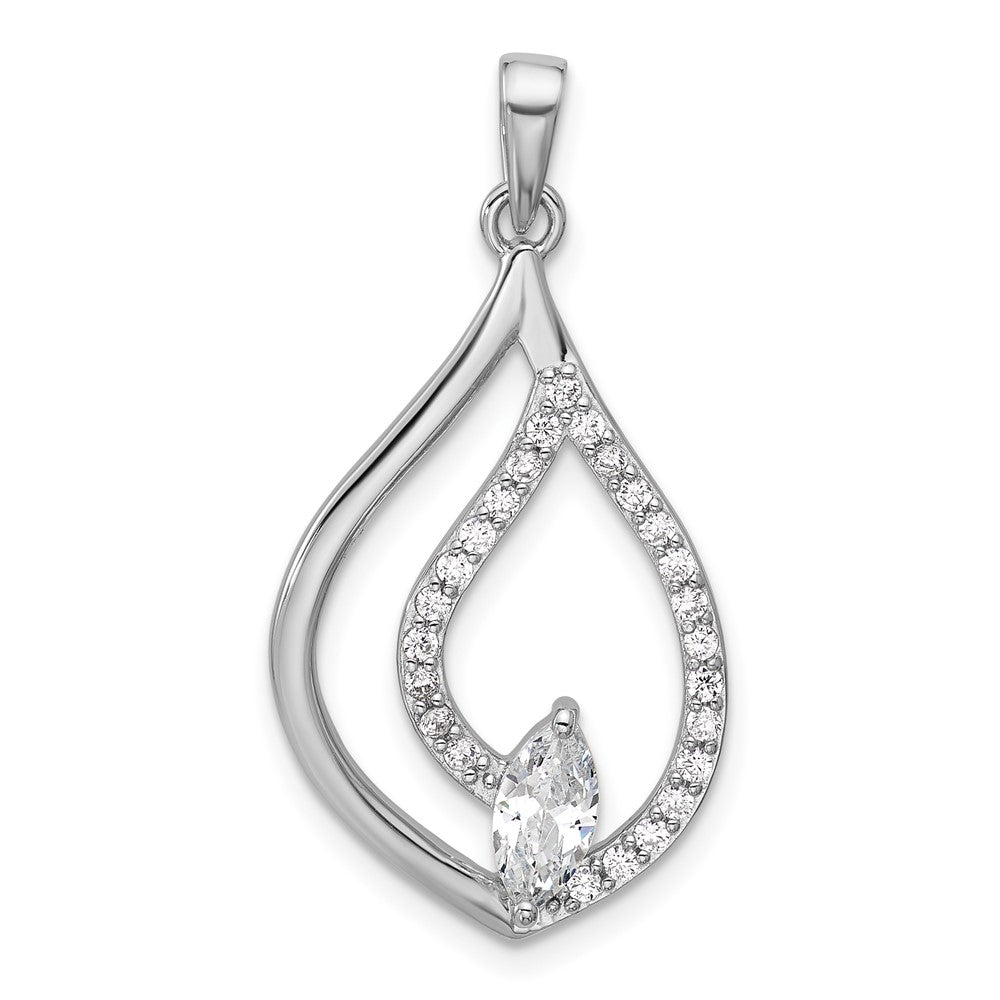 Sterling Silver Rhodium-plated Marquise CZ Polished Teardrop Pendant
