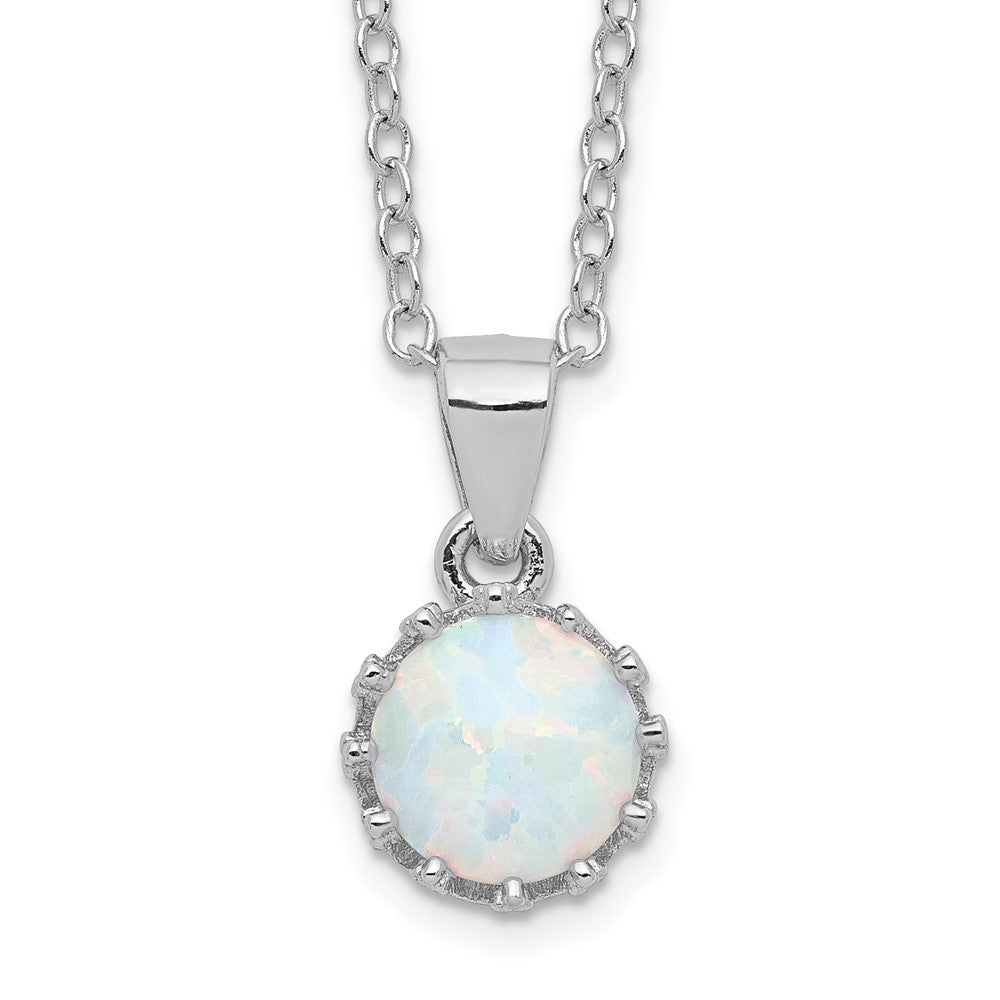 Sterling Silver Rhodium-plated Polished Created Opal Necklace