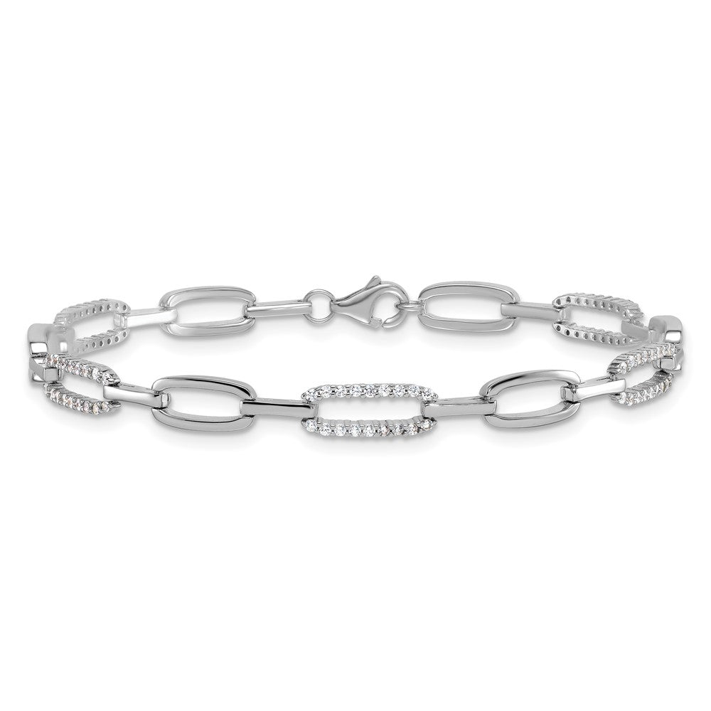 Sterling Silver Rhodium-plated Polished CZ 4.7mm Paperclip Link 7 Inch Bracelet