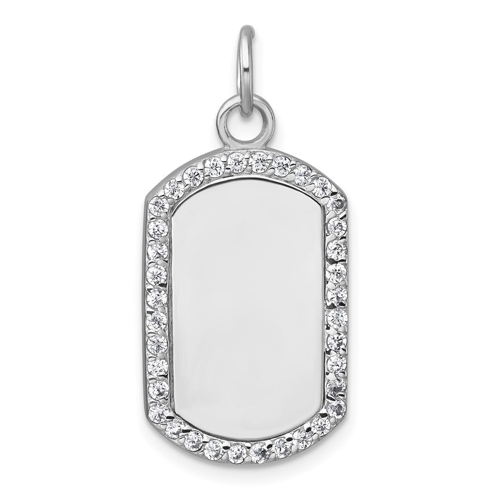 Sterling Silver Rhodium-plated Polished CZ Engraveable Dog Tag Pendant