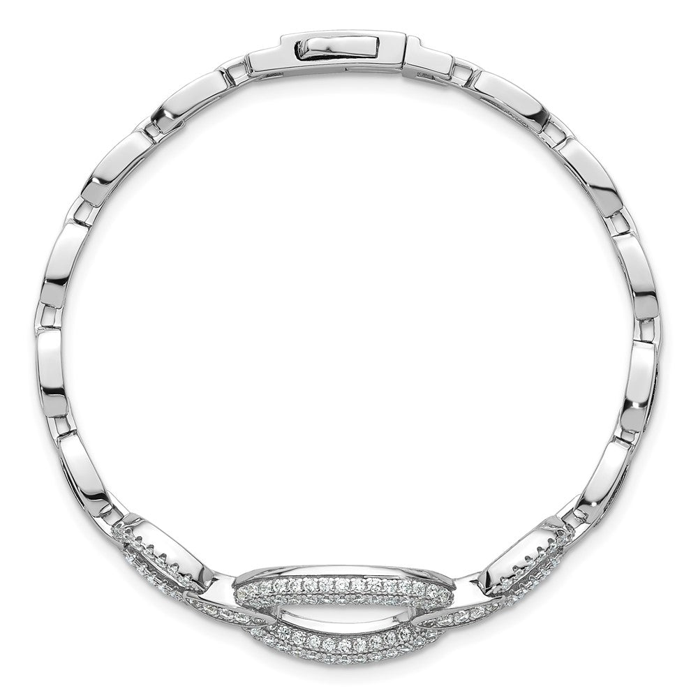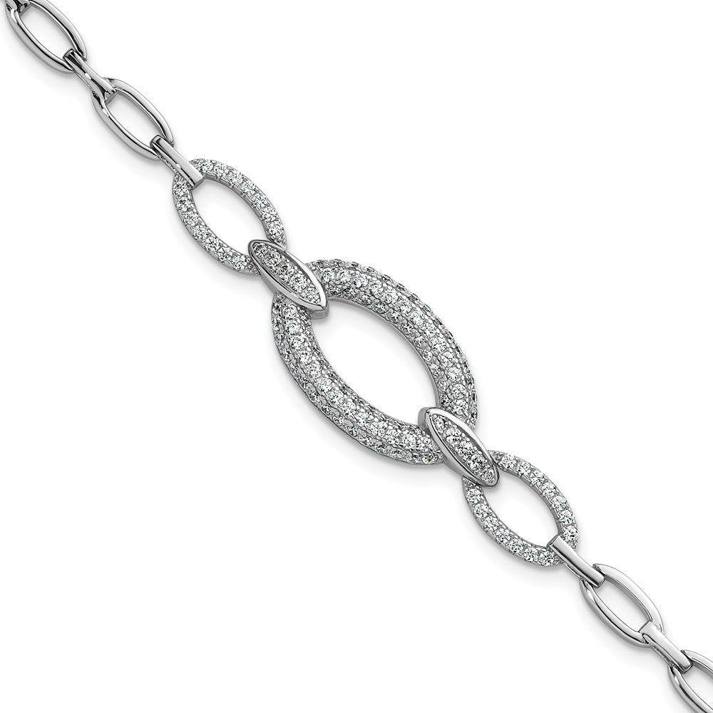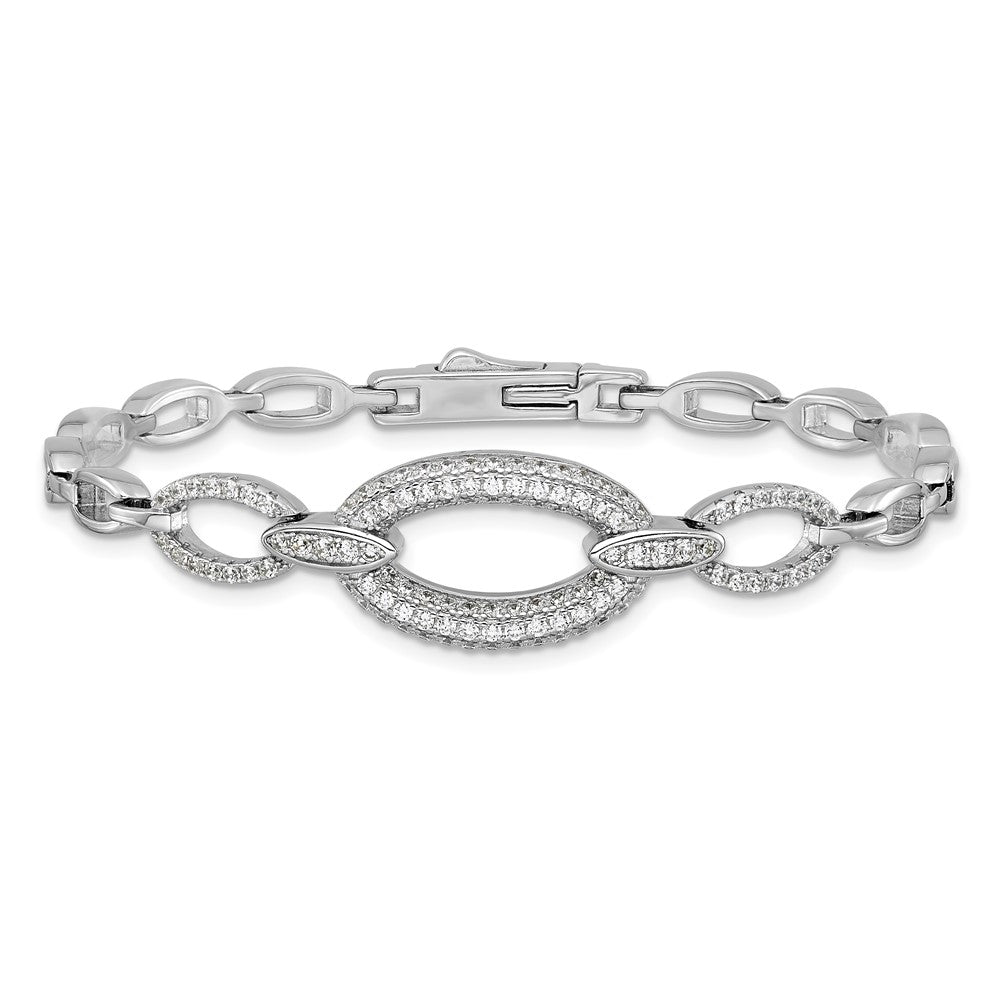 Sterling Silver Rhodium-plated Polished CZ Oval Link 7 inch Bracelet