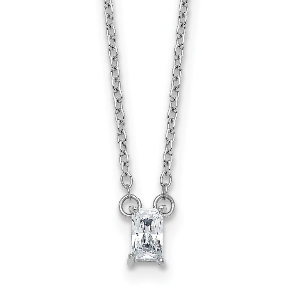 Sterling Silver Rhodium-plated Polished Emerald-cut CZ 16 Inch with 1.75 Inch Extension Necklace