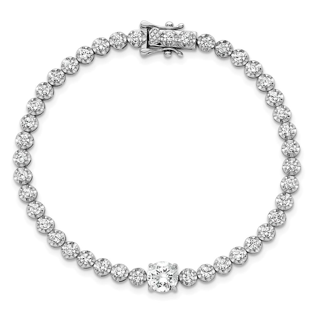 Sterling Silver Rhodium-plated Polished Fancy Round CZ 7.25 Inch Bracelet