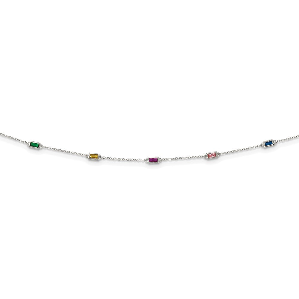Sterling Silver Rhodium-plated Polished Multicolor CZ Necklace