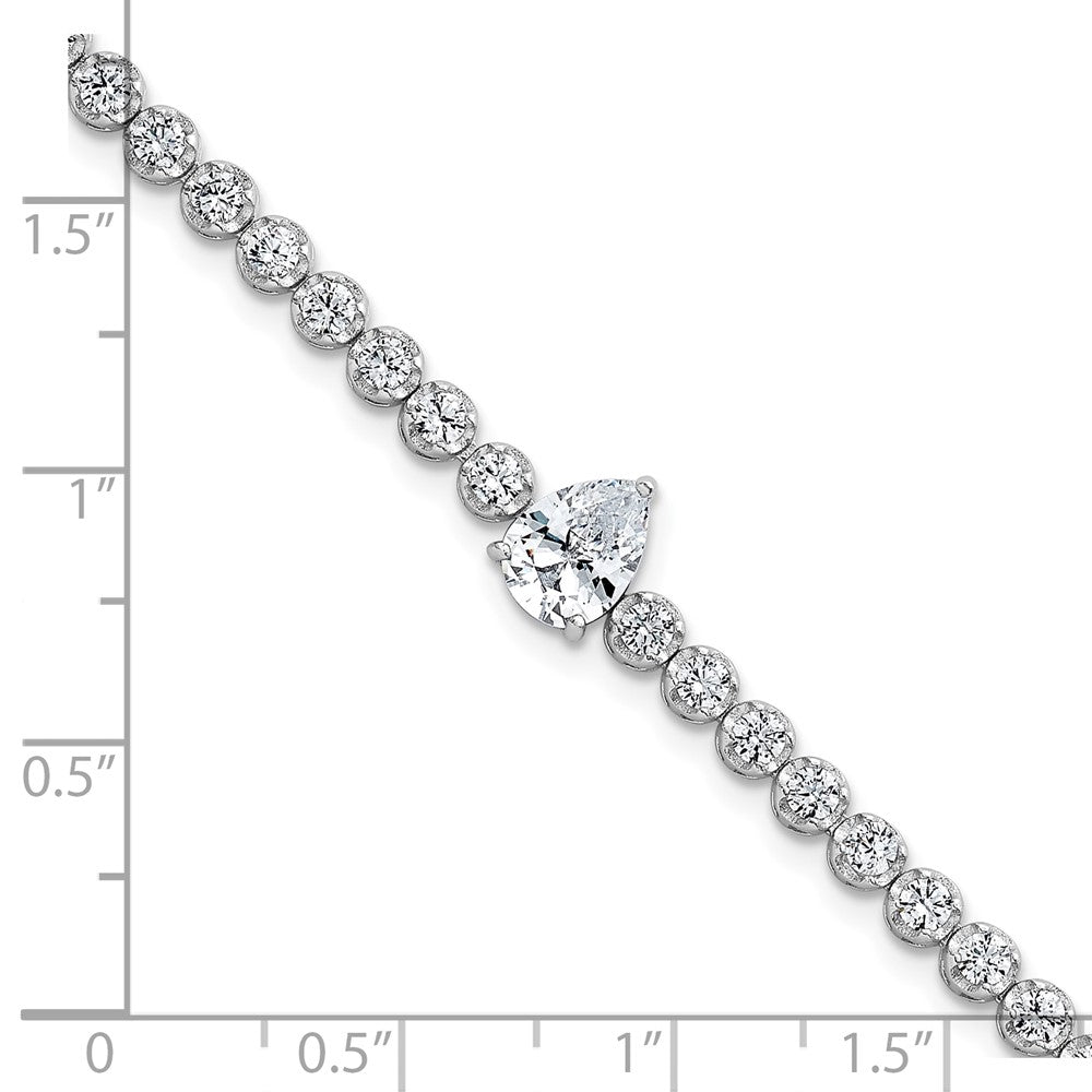 Sterling Silver Rhodium-plated Polished Round and Pear Teardrop CZ 7.25 Inch Bracelet