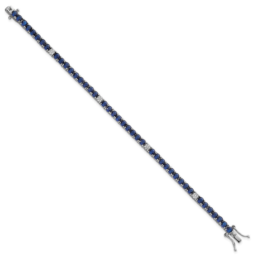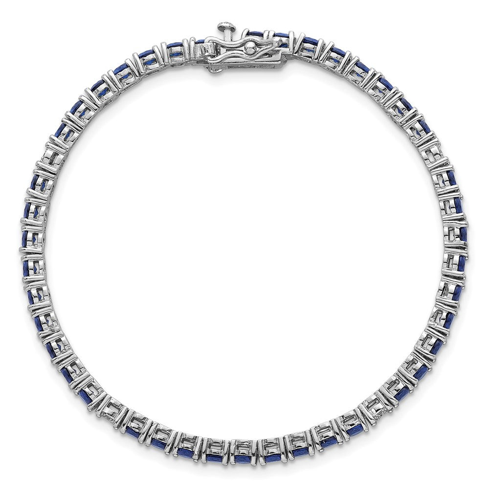 Sterling Silver Rhodium-plated Polished Round Blue and White CZ 7 Inch Bracelet