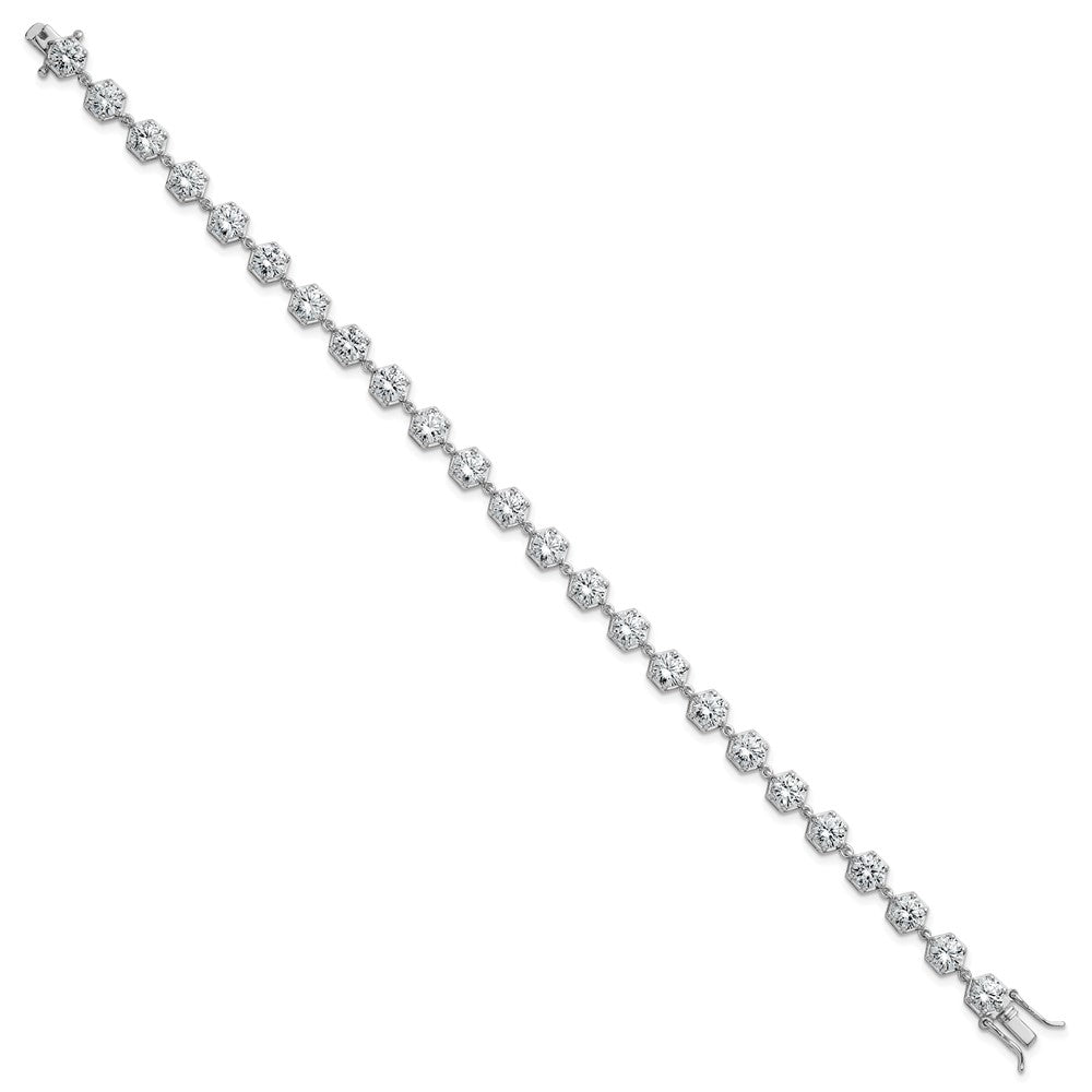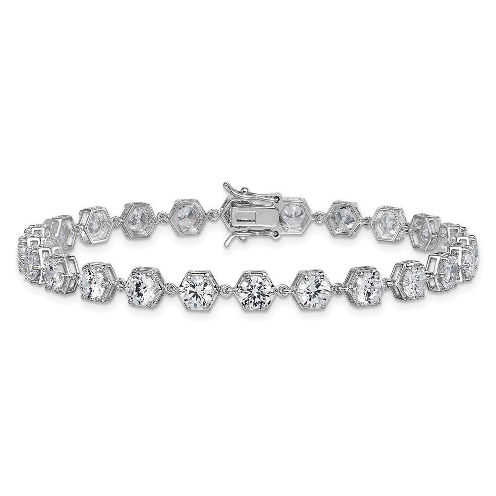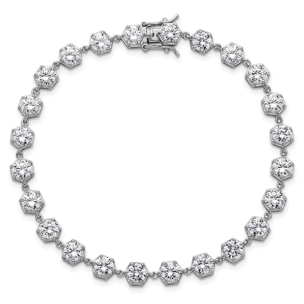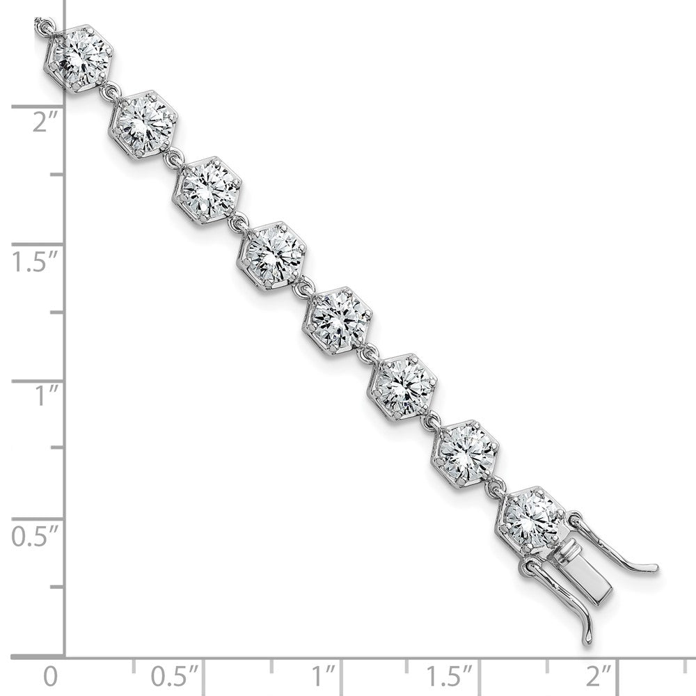 Sterling Silver Rhodium-plated Polished Round CZ in Hexagon Setting 8 Inch Bracelet