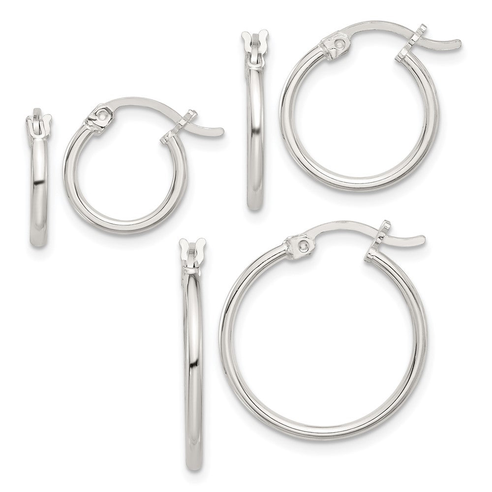Sterling Silver Rhodium-plated Polished Set of 3 Hoop Earring Set