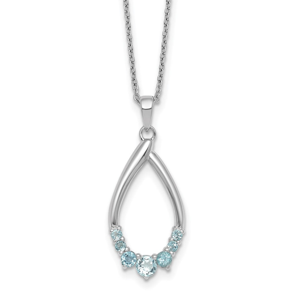 Sterling Silver Rhodium-plated Polished Swiss Blue Topaz Teardrop 16 Inch with 2 Inch Extension Necklace