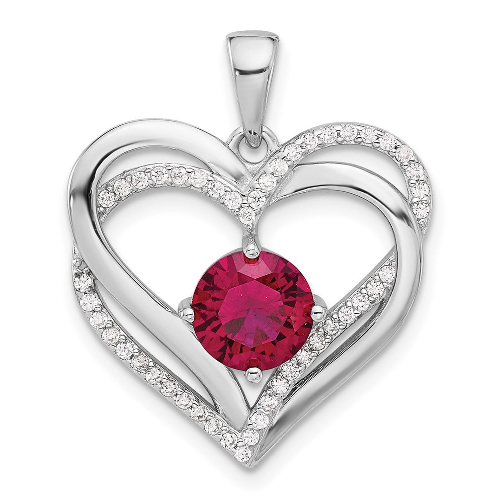 Sterling Silver Rhodium-plated Red and White CZ Double Heart Pendant