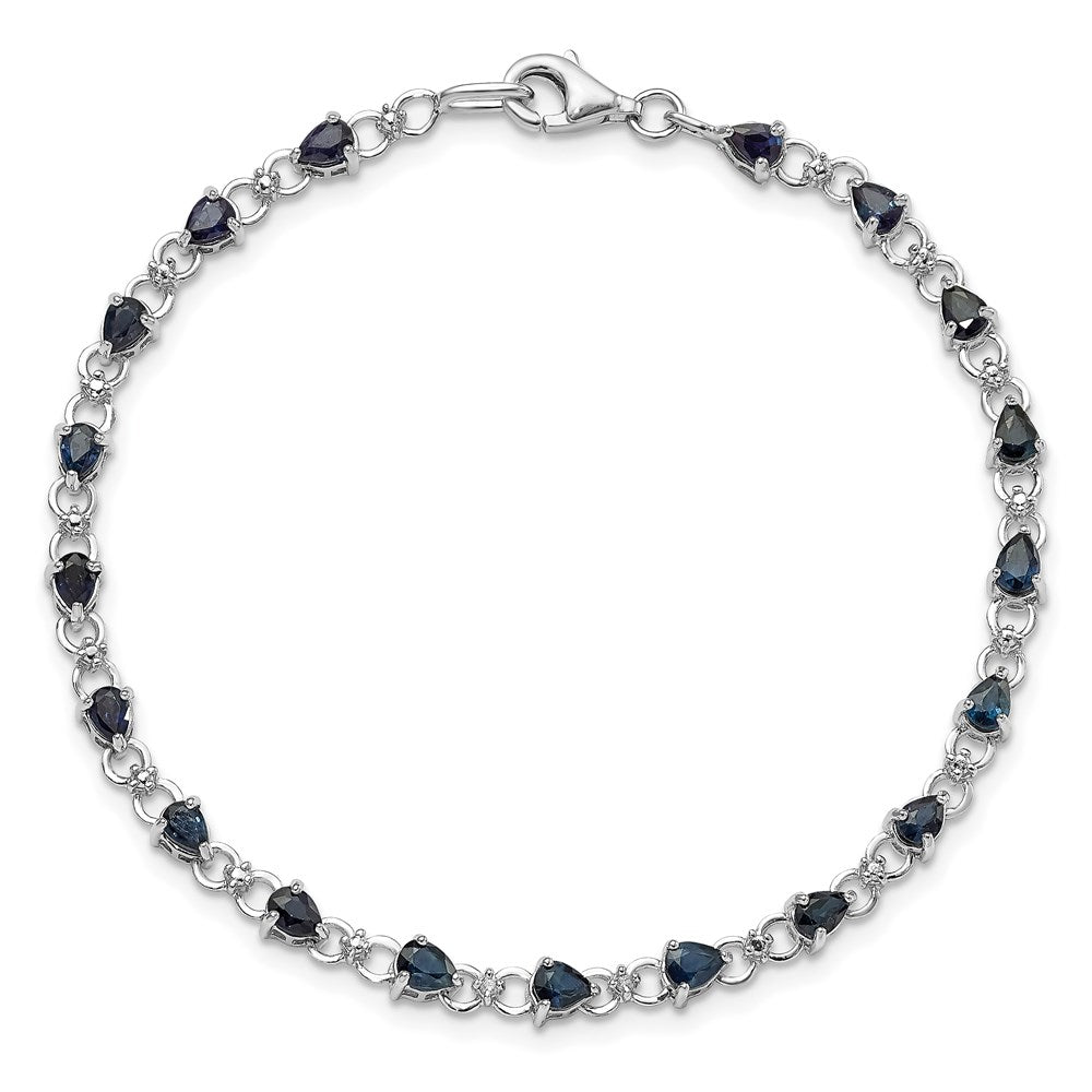 Sterling Silver Rhodium-plated Sapphire and Diamond Bracelet - 4