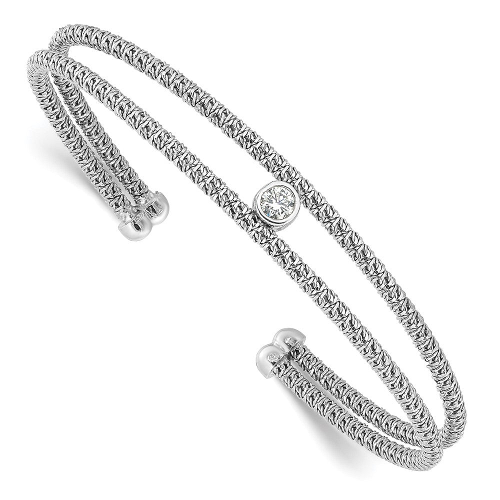 Sterling Silver Rhodium-plated Textured D/C CZ Two Band Cuff Bracelet