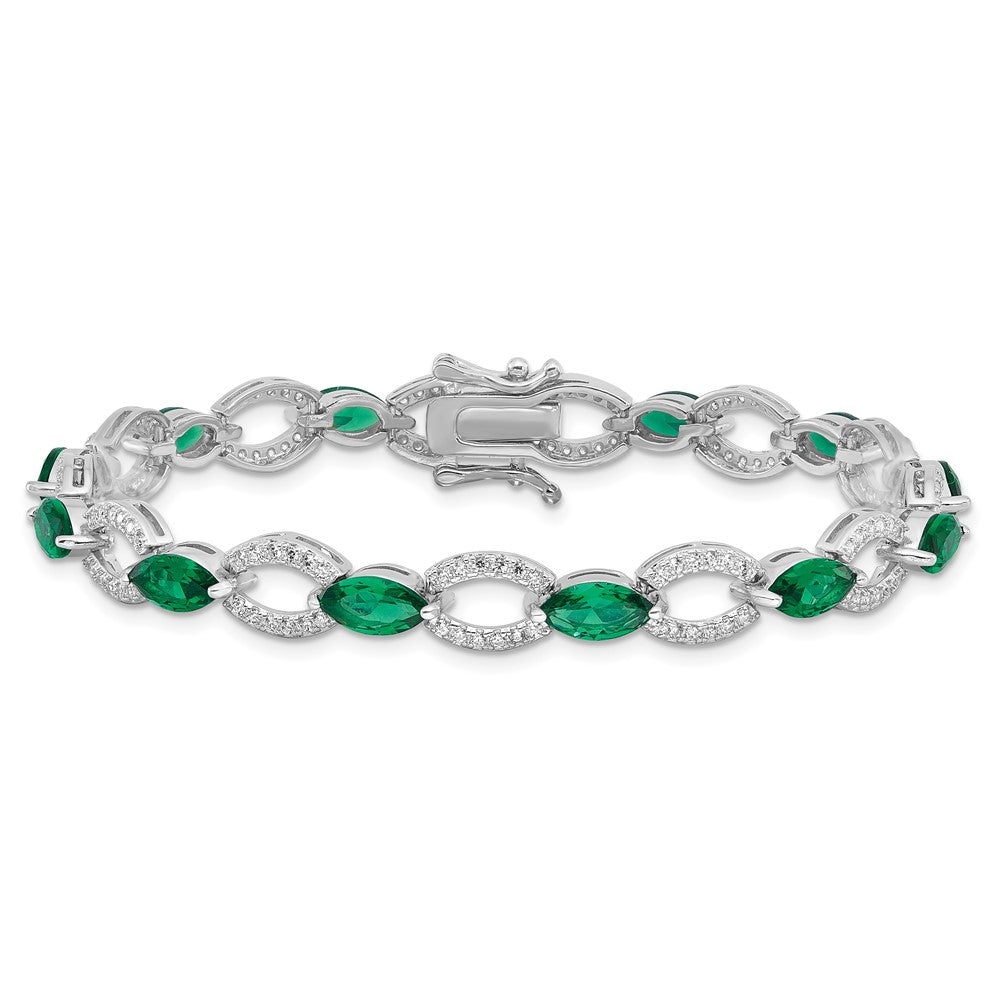 Sterling Silver Rhodium-plated White and Green CZ Link Bracelet